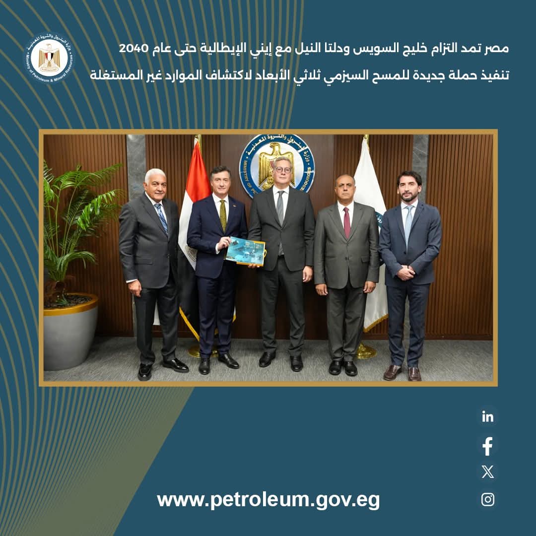 وأكد وزير البترول عقب التوقيع أن الاتفاق يمثل إنجازًا استراتيجيًا يُبنى على أكثر من 70 عامًا من الشراكة بين مصر والشركة الإيطالية، ويمهد الطريق لاكتشاف المزيد من موارد الغاز والبترول خلال السنوات المقبلة.