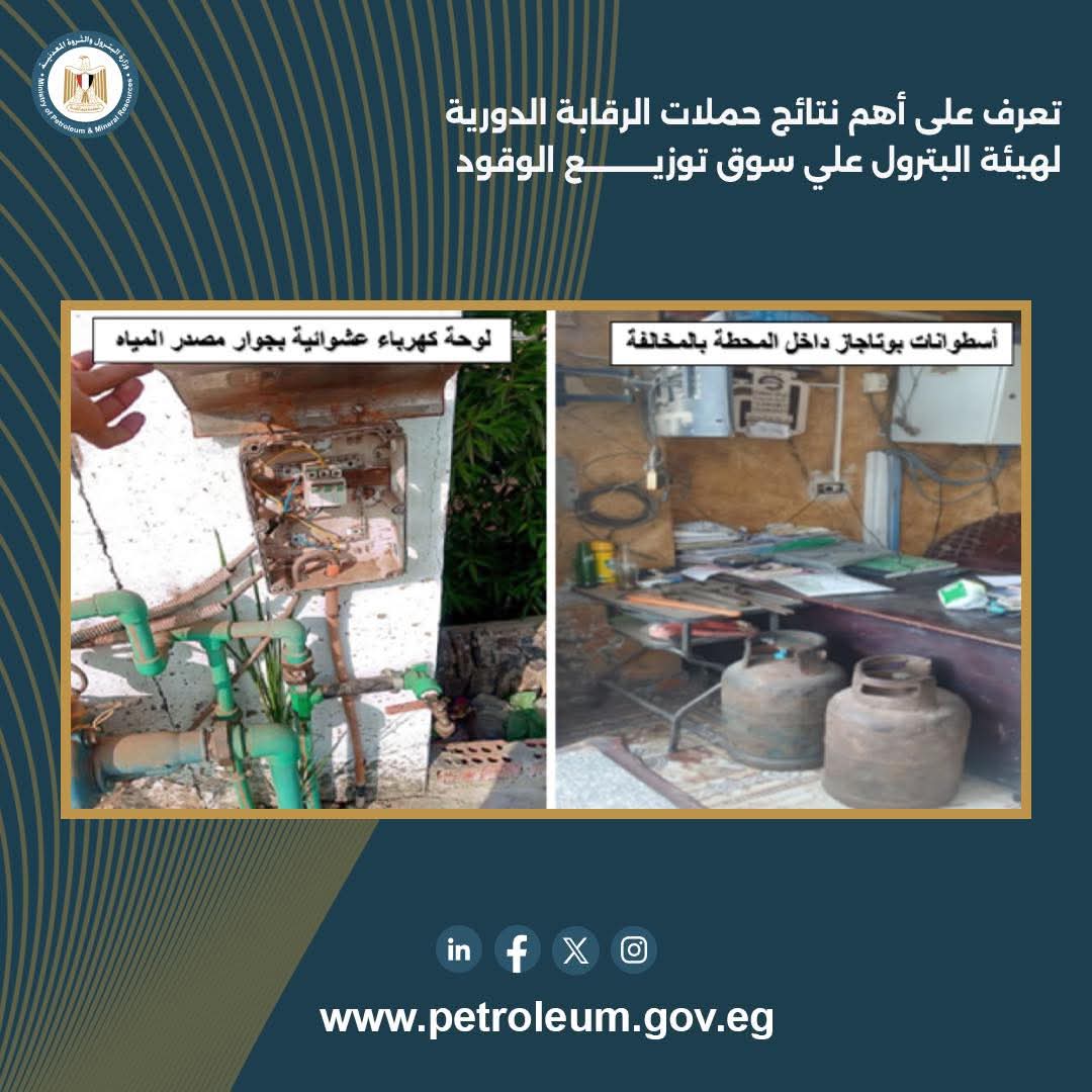 واصلت الهيئة المصرية العامة للبترول تنفيذ حملاتها الدورية على محطات الوقود ونقاط توزيع المنتجات البترولية، في إطار خطة تستهدف إحكام الرقابة ومنع أي محاولات للإتجار غير المشروع.