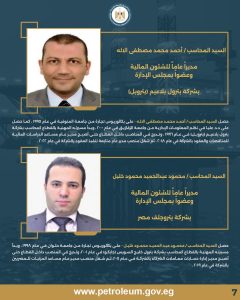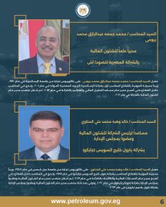 تضمنت الحركة تعيين نائب للعضو المنتدب التنفيذي للشئون المالية بالشركة المصرية القابضة للغازات الطبيعية (إيجاس)، إلى جانب تكليف عدد من مساعدي رؤساء الشركات والمديرين العموم للشئون المالية في شركات التكرير والإنتاج والغاز والخدمات.