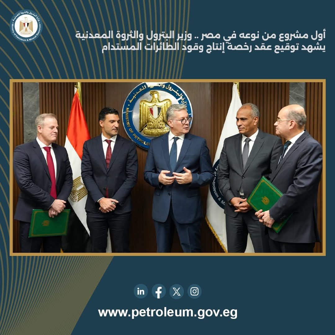 أول مشروع من نوعه في مصر .. وزير البترول والثروة المعدنية يشهد توقيع عقد رخصة إنتاج وقود الطائرات المستدام