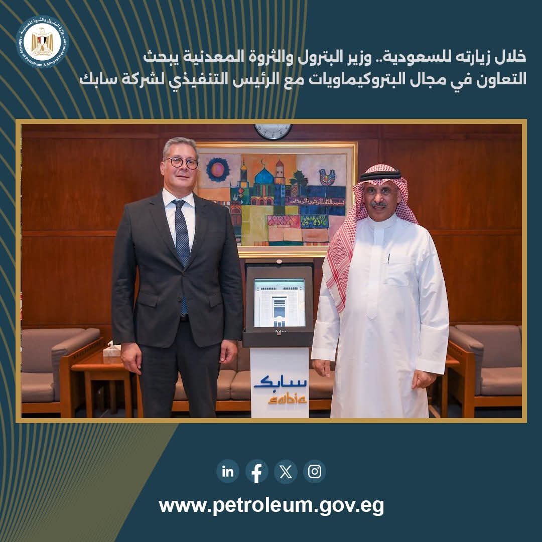 خلال زيارته الحالية للمملكة العربية السعودية، عقد المهندس كريم بدوي وزير البترول والثروة المعدنية اجتماعًا موسعًا مع المهندس عبدالرحمن بن عبدالله الفقيه، الرئيس التنفيذي للشركة السعودية للصناعات الأساسية (سابك)، وذلك بمقر الشركة لبحث تعزيز التعاون بين الجانبين في مجال الصناعات البتروكيماوية.