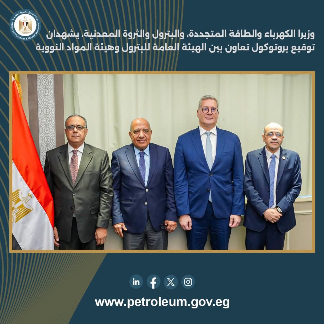 في إطار استراتيجية الدولة لتعظيم عوائد الخامات الأرضية واستخلاص العناصر الاقتصادية، شهد الدكتور محمود عصمت وزير الكهرباء والطاقة المتجددة، والمهندس كريم بدوي وزير البترول والثروة المعدنية، مراسم توقيع بروتوكول تعاون بين هيئة المواد النووية والهيئة العامة للبترول، بمقر الوزارة بالعاصمة الإدارية الجديدة.