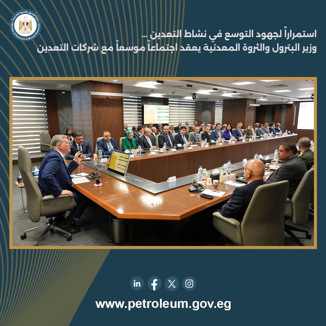 استمرارا لجهود التوسع في النشاط التعديني، عقد المهندس كريم بدوي وزير البترول والثروة المعدنية اجتماعاً موسعاً مع عدد من رؤساء وممثلي الشركات العاملة في مختلف مجالات صناعة التعدين، لبحث الفرص الاستثمارية المتاحة وتعزيز التعاون لزيادة أنشطة البحث والتنقيب والصناعات التحويلية ذات القيمة المضافة.